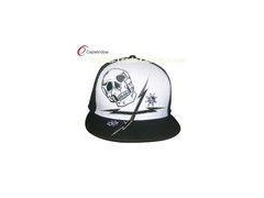 White Skull Flat Embroidery Hip Hop Caps With Black Peak 0840